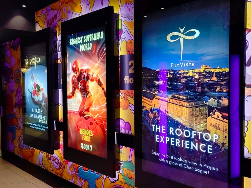 Máme vlastní grafické studio, výrobu a tým pracantů. Polepujeme obchody, rozsvěcíme loga & světelné panely. Umíme motion grafiku pro menuboardy, socky i LED kostku nad ledovou plochu. Působíme po celé republice i mimo ni.